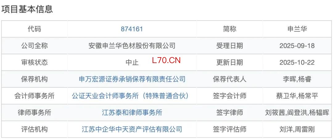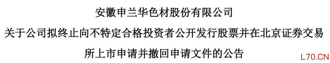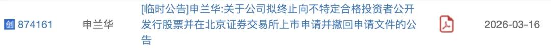 安徽申兰华色材股份有限公司(“申兰华”)于2026年3月16日召开第二届董事会第三次会议,审议通过了《关于公司拟终止向不特定合格投资者公开发行股票并在北京证券交易所上市申请的议案》和《关于撤回向不特定合格投资者公开发行股票并在北京证券交易所上市申请材料的议案》。