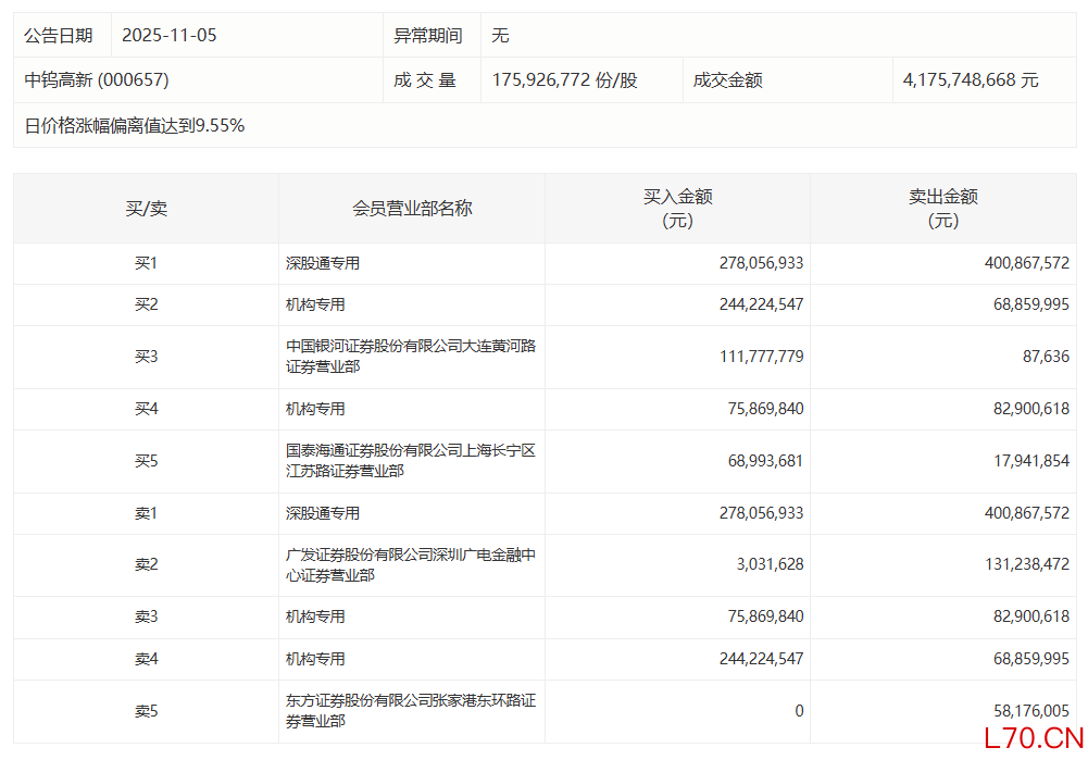 中钨高新今日涨停,陈小群席位净买入1.12亿元