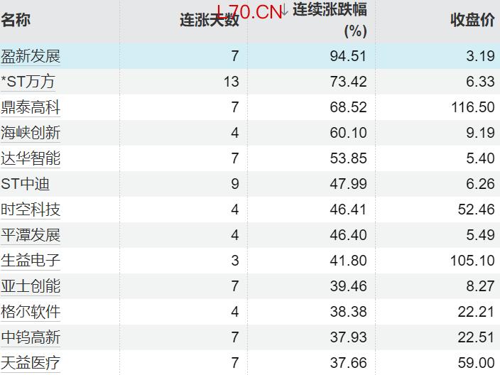 152只个股连续上涨5个交易日及以上