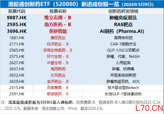 本周一(3月9日),港股通创新药ETF(520880)标的指数(恒生港股通创新药精选指数)调仓生效,成份股“13进0出”,总数增至50只。调仓焕新后,该指数相对优势进一步强化: