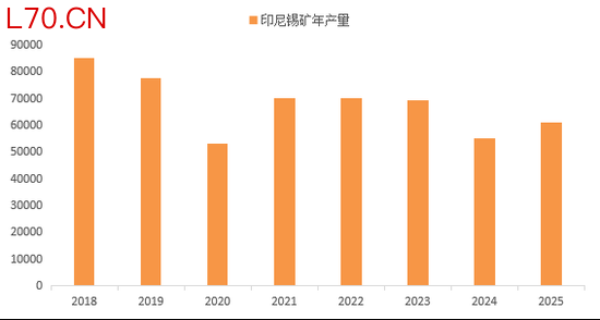 ⑤ 印尼2025年锡矿产量61000吨,较2018年85000吨下滑28%。