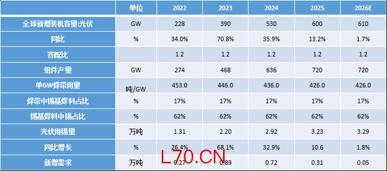 全球光伏新增装机用锡量统计
