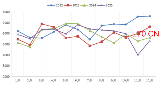 国内精炼锡产量季节性(单位:吨)