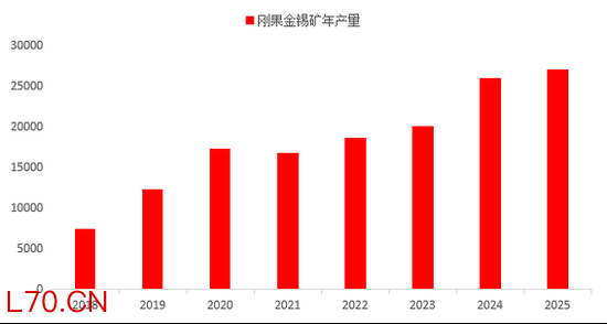 ① 刚果(金)2025年锡矿产量27000吨,较2018年锡矿产量7400吨,增幅265%;