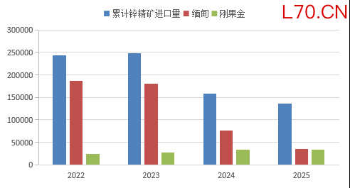 2025年从缅甸的进口总量为36147.64实物吨,累计同比减少41284.3实物吨。2025年从刚果(金)进口总量为33080.62实物吨,累计同比减少1098.81实物吨。缅甸是扭转锡矿供需结构的关键变量。