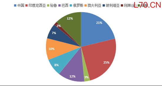 目前,全球锡精矿产量主要集中在中国、印尼、缅甸、刚果(金)、巴西、秘鲁、玻利维亚,合计产量占全球的86%。其中: