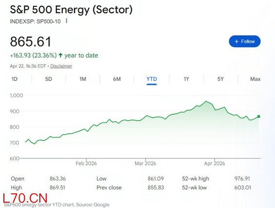 (标普500能源板块年内走势图 来源:TradingView、Finbold)