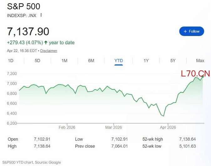 最后,尽管整体来看,美国股市在2026年的表现不及黄金——年初至今标普500上涨4.07%——但多个板块在前四个月中表现突出。