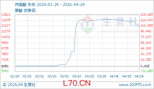 04月24日丙烯酸11983.33元/吨 60天上涨95.91%