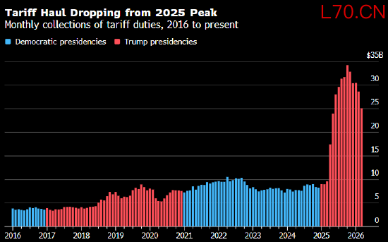 特朗普在去年推出的税收方案中兑现了多项竞选承诺,政府表示,规模达4万亿美元的减税成本将在10年内通过额外关税收入完全抵消,但最高法院后来否决了他动用紧急权力征收大部分关税的做法。特朗普已开始寻求替代方案,但过程更为复杂,包括向纳税人发放2000美元退税,但这也需要国会批准。