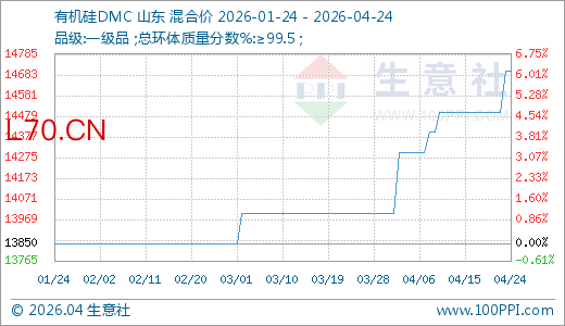04月24日有机硅DMC价格14700.00元/吨 30天上涨5.00%